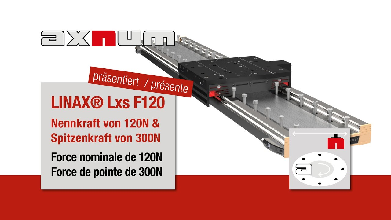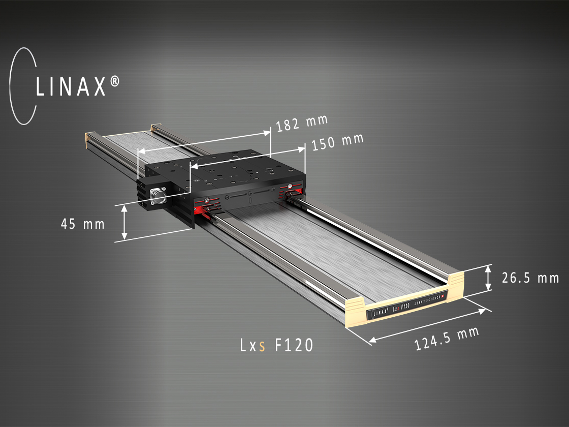 Die LINAX® Lxs F120 verfügt über eine Nennkraft von 120N und einer Spitzenkraft von 300N. Sie ist mit einer präzisen Führung mit 4 x je 4 Kugelumlaufrollen und einem absoluten Messsystem mit einer Auflösung von 1µm ausgestattet und bietet die eine überragende Leistung und Präzision. Die LINAX® Lxs F120 Linearmotorachse bietet eine mühelose Installation, die auf der einzigartigen Kombination von Einkabellösung und Kompatibilität mit dem XENAX® Xvi 75V8S Servocontroller basiert.