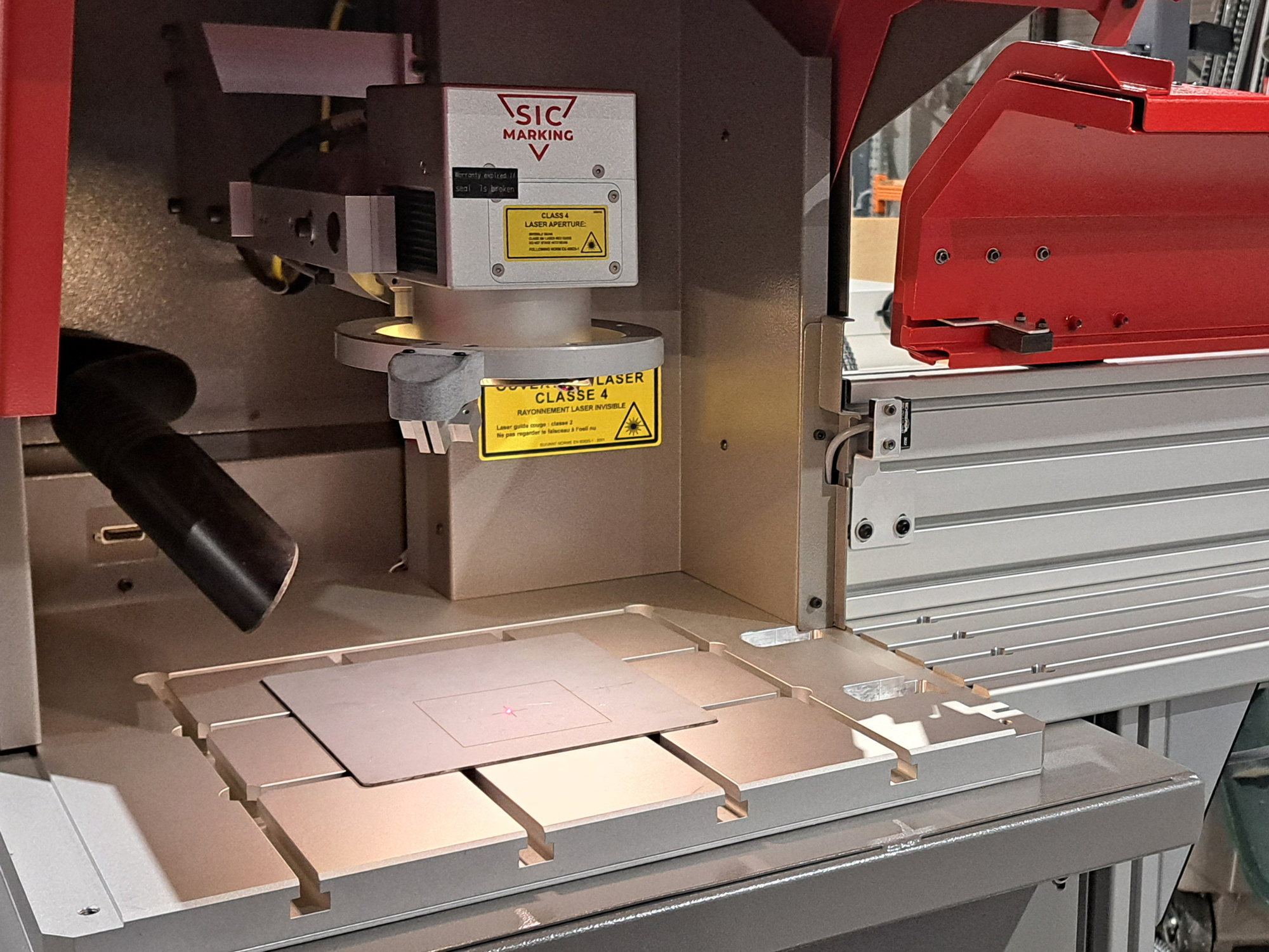 Die Lasermarkierstation L-Box mit Faserlaser wird mit einem seitlichen Tunnel ausgestattet. Dadurch ist die Markierung von Stangen und Profilen oder anderen langen Werkstücke, welche nicht in einen Standardlaser passen, ganz einfach.