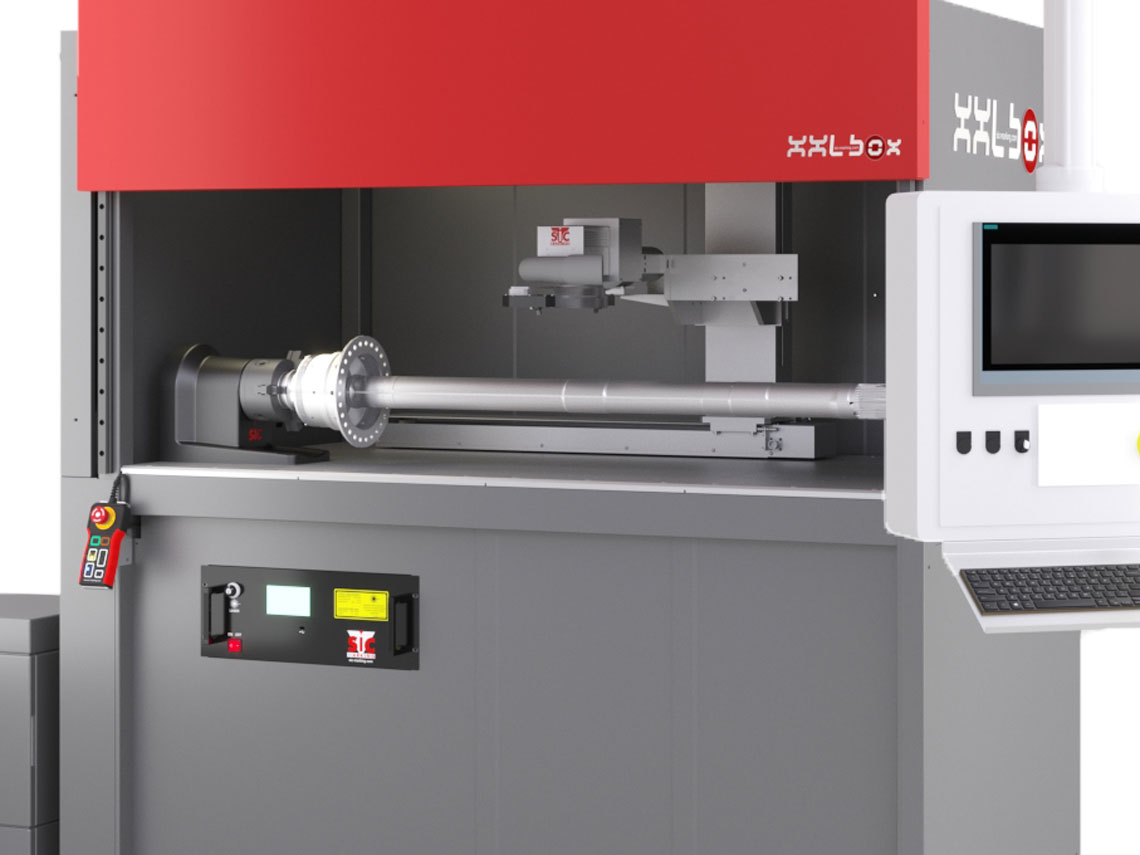 Die Drehachse erlaubt Markierungen auf dem Umfang zylindrischer Werkstücke. Werkstücke können bis zu 3 kg wiegen und einen Durchmesser bis zu 250 mm besitzen. Die Steuerungssoftware ist enthalten.