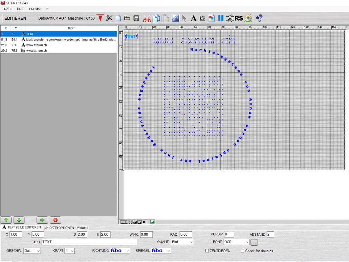 PC-Software SICTOOL e10 Line für die direkte Steuerung des Markierkopfs