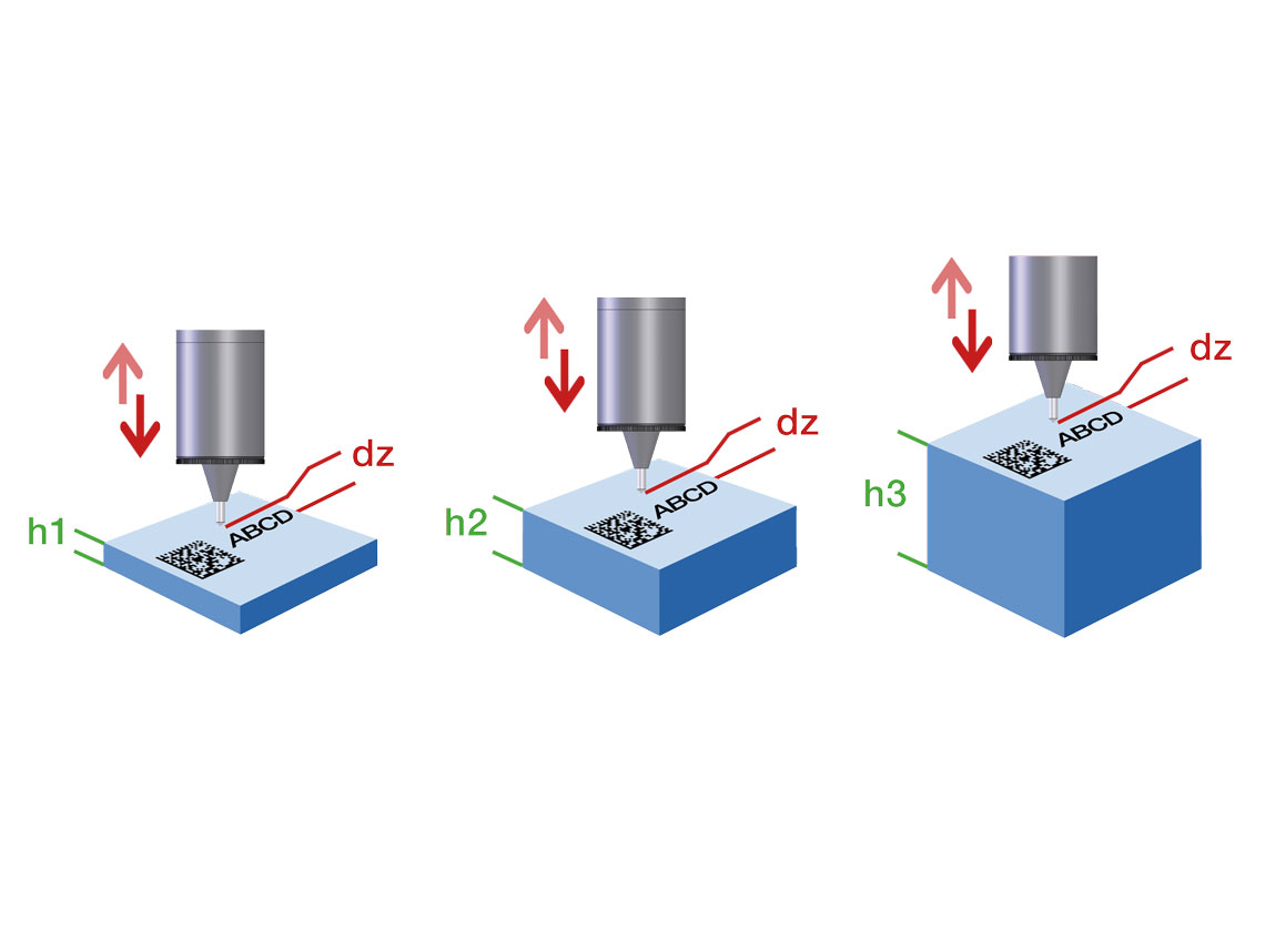 Der Autosensing-Sensor ist mit der ebenfalls optional erhältlichen automatisch gesteuerten Z-Achse kombiniert und stellt einen immer gleichen Abstand zwischen Nadel und Werkstück sicher. Das System ermittelt selbstständig den korrekten Abstand zum Werkstück bei wechselnden Werkstückhöhen.