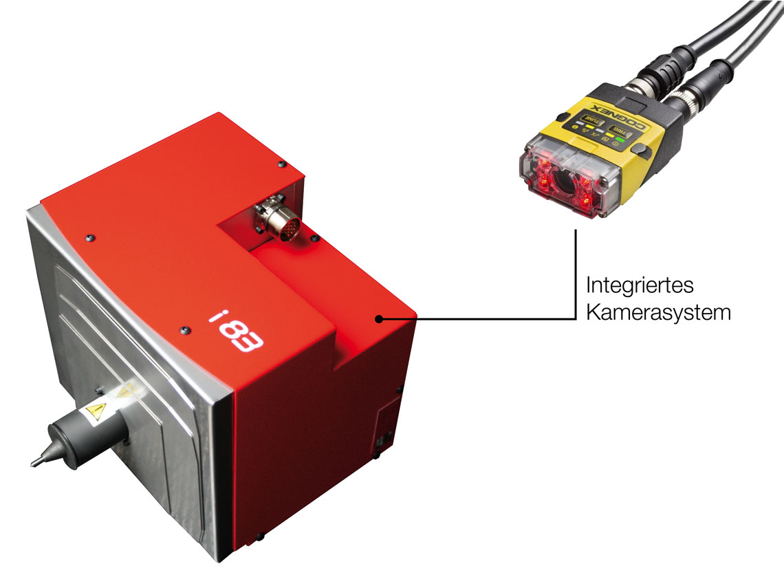 Das Markiersystem i83 bietet eine schnelle Nadelmarkierung auf allen Materialarten. Der elektromagnetische Antrieb benötigt keine zusätzliche Pneumatik und ist so effizienter als Systeme die Druckluft benötigen. Werkstücke von unterschiedlicher Form und Beschaffenheit (flach, konkav, konvex, rund, unbehandelt, behandelt...) können beschriftet werden.