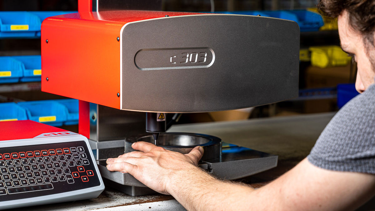 Mit seiner exzellenten Genauigkeit, Geschwindigkeit und Robustheit ist das Markiersystem c303 perfekt für alle Nadelmarkierapplikationen geeignet, bei denen es auf eine besonders grossflächige Beschriftung ankommt. Sein Markierfenster von 300 x 150 mm ist das grösste Markierfenster unter den Standardsystemen von SIC Marking. Das eingebaute Zählwerk und die LED Beleuchtung vervollständigen dieses zuverlässige und flexible System.