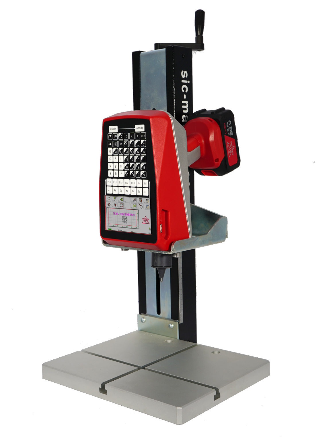 Die e-MARK EVO ist ein mobiles, akkubetriebenes Nadelpräger-Markiersystem zur Kennzeichnung von Metallen und Kunststoffen bis 62 HRC. Mit hoher Präzision markiert er Texte, Logos, DataMatrix-Codes oder Seriennummern. Das ergonomische Design, die integrierte Steuerung mit Display sowie austauschbare Frontplatten machen ihn zur idealen Lösung für flexible und wechselnde Markieraufgaben.