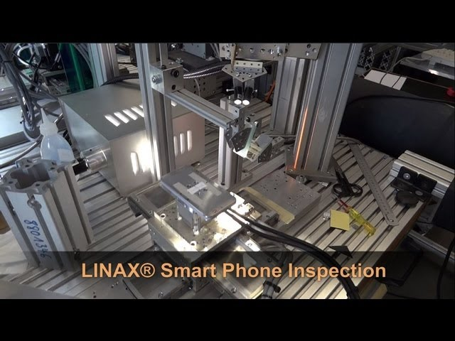 Diese ultrakompakte X-Y Applikation bestehend aus zwei LINAX® Lxs Linearmotor-Achsen und einem rotativen Servomotor simuliert die Inspektion eines Smartphone Rahmens. Der neue Denkansatz dabei ist das Produkt anstelle der Kamera zu bewegen.