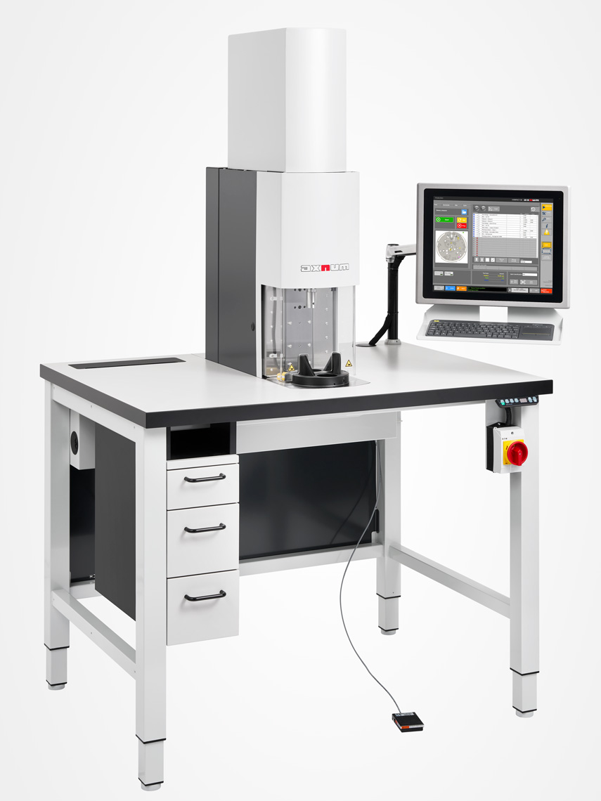Dank dieser individuellen Lösung sind alle Vorteile, die mit unseren Standardprodukten verbunden sind, vorhanden. Die Tür zur Sicherheit des Mitarbeiters und kann geschlossen bleiben und es wird eine maximal optimierten Zykluszeit erreicht. Der Arbeitstisch mit elektrischer Höhenverstellung, Schubladen und Gelenkarm für den PC ist das ultimative Zubehör, um einen idealen und sofort einsatzbereiten Arbeitsplatz zu geniessen.
