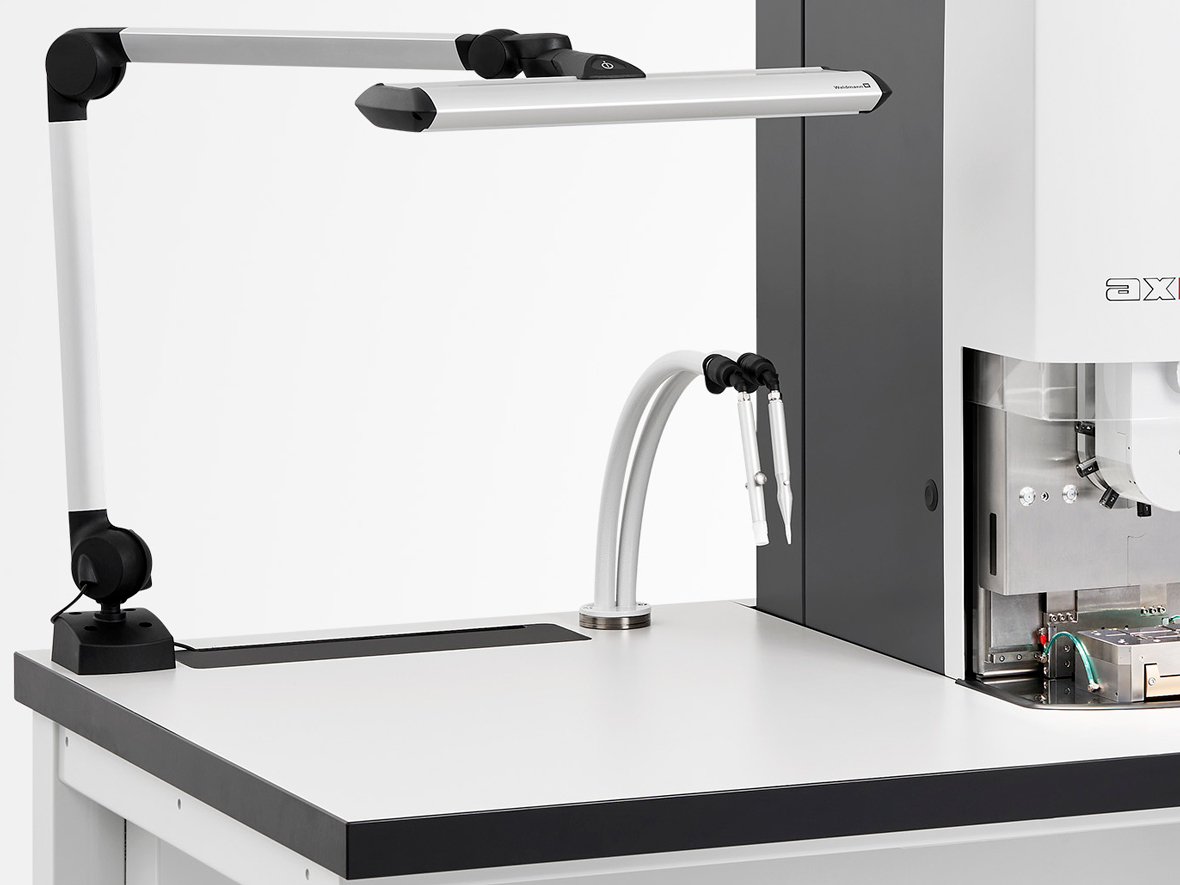 Passende Leuchten sind als Zubehör erhältlich, um eine ideale Ausleuchtung des Arbeitsbereichs sicherzustellen. Dies minimiert die Belastung der Augen und unterstützt eine präzise und entspannte Arbeitsweise – besonders bei detaillierten Aufgaben.