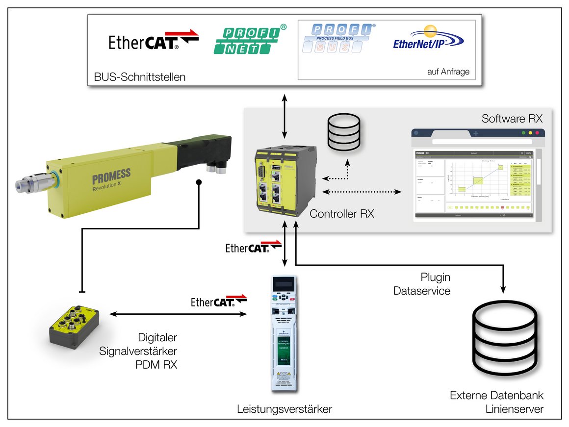 Es stehen zwei Generationen von Servopressen zur Auswahl: Die bewährte UFM V5-Reihe und die innovative neue Generation Revolution X (RX-Reihe). Die Servopressen der UFM V5-Reihe bestehen aus einer Mechanik mit integriertem Kraftsensor und Absolut Wegmesssystem, digitalem PDM-Verstärker, Frequenzumrichter und UFM V5-Software. Die Servopressen der RX-Reihe sind mechanisch ähnlich aufgebaut und werden durch den zentralen Controller RX und die Software RX gesteuert.