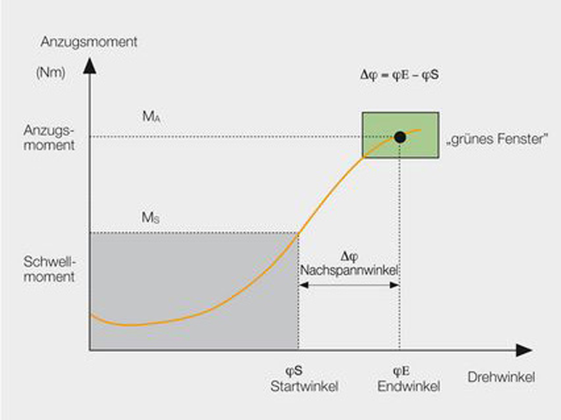 Der eigentliche Montageprozess wird dabei unverändert durchgeführt. Man kontrolliert aber den ab einem bestimmten Schwellmoment auftretenden Nachspannwinkel. Für eine „i.O.-Beurteilung“ muss dieser Nachspannwinkel innerhalb bestimmter Grenzwerte liegen, dem sogenannten grünen Fenster.