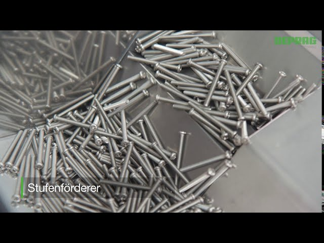 Der Stufenförderer eacy step feed zeichnet sich durch die besonders schonende Behandlung des Zuführguts aus und ist speziell für lange Schrauben geeignet. Durch die sanfte Bauteilförderung und die abriebarme Zuführung ist eine geringe Partikelbildung gewährleistet. Empfindliche Schrauben werden dadurch optimal zugeführt und geschont.