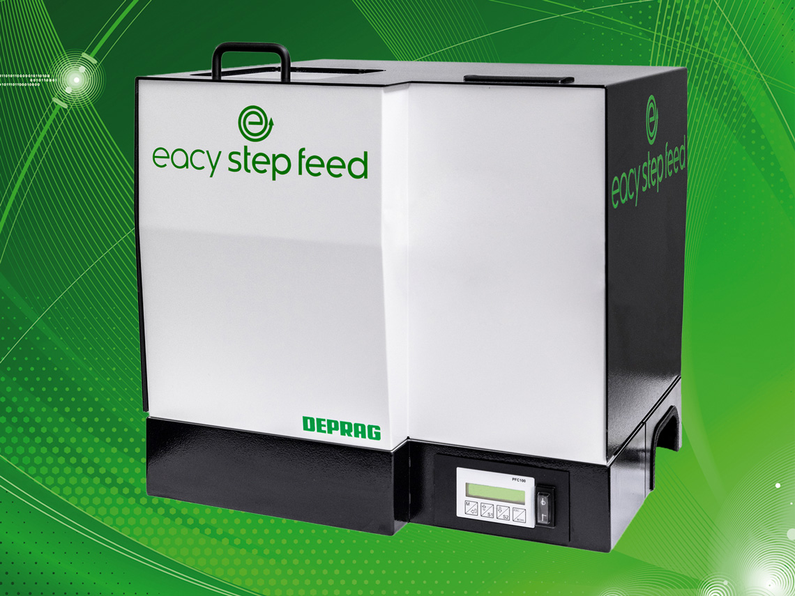 Bei einem Stufenförderer wird das Zuführgut über linear bewegliche Förderplatten vom Bevorratungsbehälter stufenweise zur Zuführschiene befördert. In der Zuführschiene erfolgt die geometrische Ausrichtung des Förderguts. Per Linearförderer werden die Zuführteile dann in Richtung Vereinzelung transportiert. Die Förderplatten werden von einem bürstenlosen Elektromotor angetrieben. Die Fördergeschwindigkeit kann über den smarten und energiesparenden Controller direkt geregelt werden und das Fördergut wird sanft zugeführt.