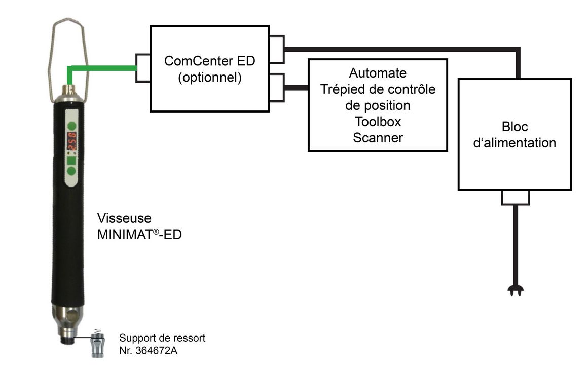 Le ComCenter ED permet un paramétrage convivial des programmes de vissage par interface web. Désormais, les programmes de vissage de la visseuse MINIMAT® ED peuvent également être sélectionnés par l'interface E/S intégrée. En outre, l’utilisation d’un signal externe de démarrage est possible. La visseuse manuelle peut être intégrée avec une API ou d'autres produits Deprag.