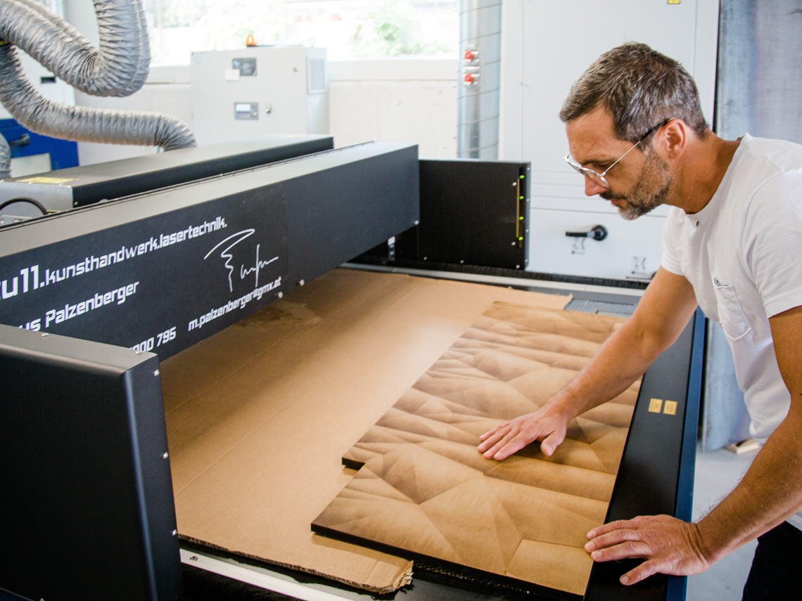 Le laser permet non seulement de graver le bois, mais aussi de découper n'importe quelle forme. Nous proposons, selon l'application, des appareils laser compacts et de petite taille, mais aussi de grands découpeurs laser pour le gravage et la découpe de grandes surfaces jusqu'à 2032 x 3048 mm.