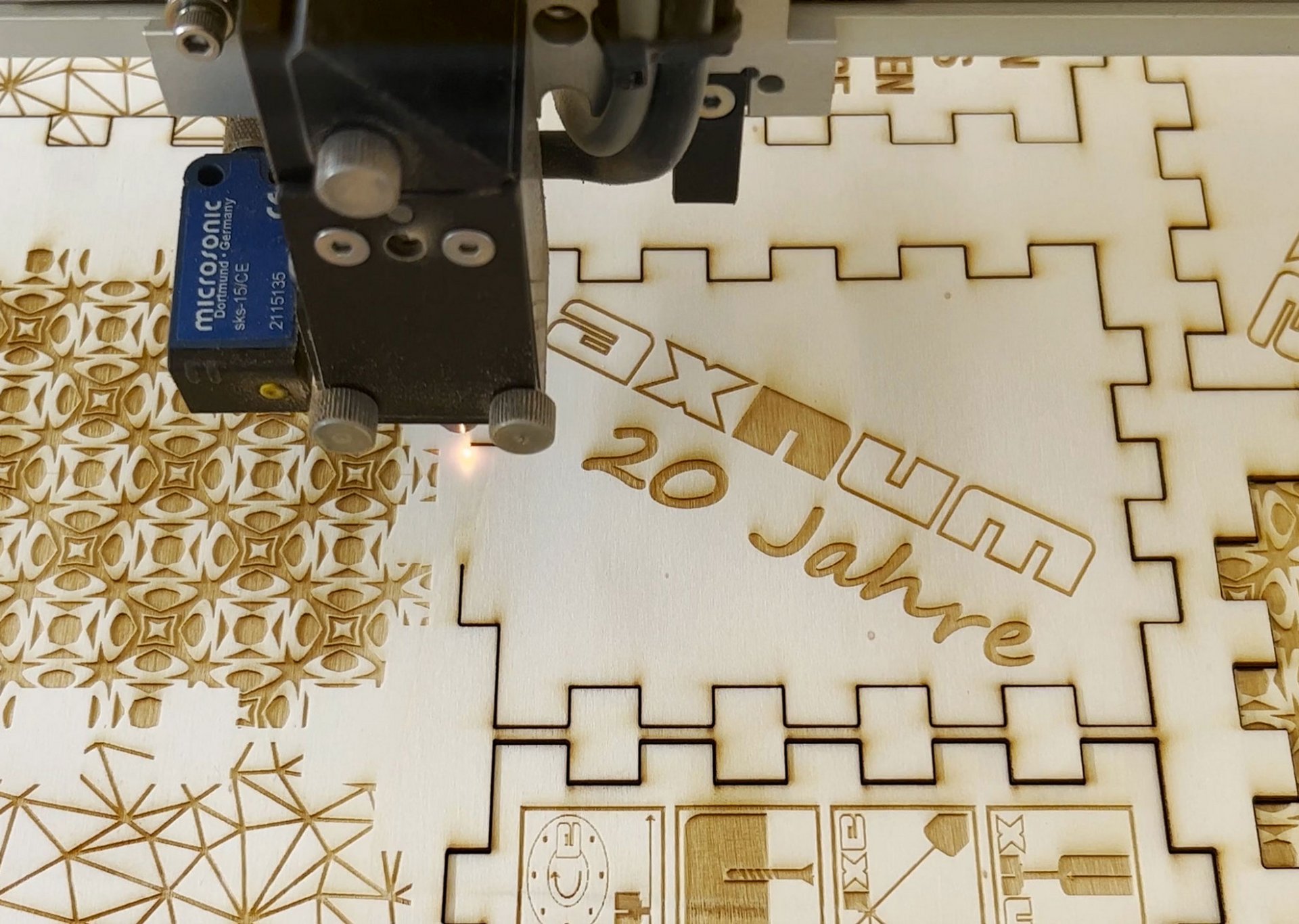 Découpe laser du bois (contreplaqué de 18 mm) avec le Laser Cutter JustLaser Large