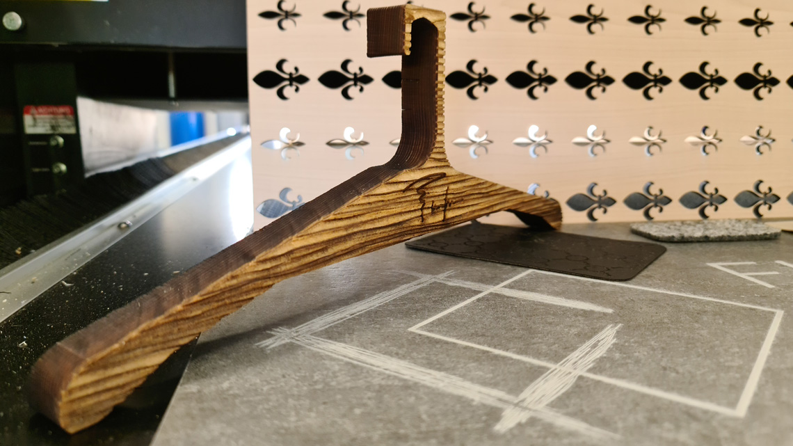Le bois se travaille très bien et de différentes manières avec un laser. Le laser cutter permet par exemple de graver un motif spécial ou de découper une forme quelconque sur le matériau.