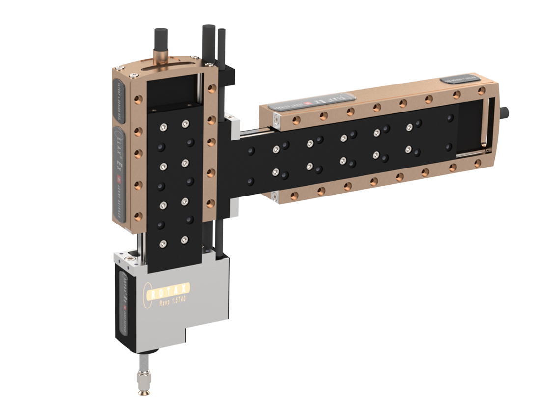 L’ajout d’un module de rotation ROTAX® Rxvp peut se faire facilement et directement sur la flasque frontale de l’axe Z Elax®. Le passage vacuum/souffle intégré et la grande précision du ROTAX® Rxvp vous permettra d’orienter vos composants en toute simplicité.