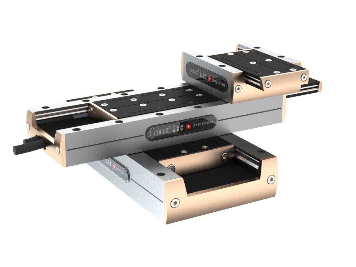 Les différents modèles de moteurs linéaires Linax® Lxc peuvent être vissés ensemble sans plaque d’adaptation. La précision et la rigidité sont garantis grâce aux guidages à rouleaux croisés.