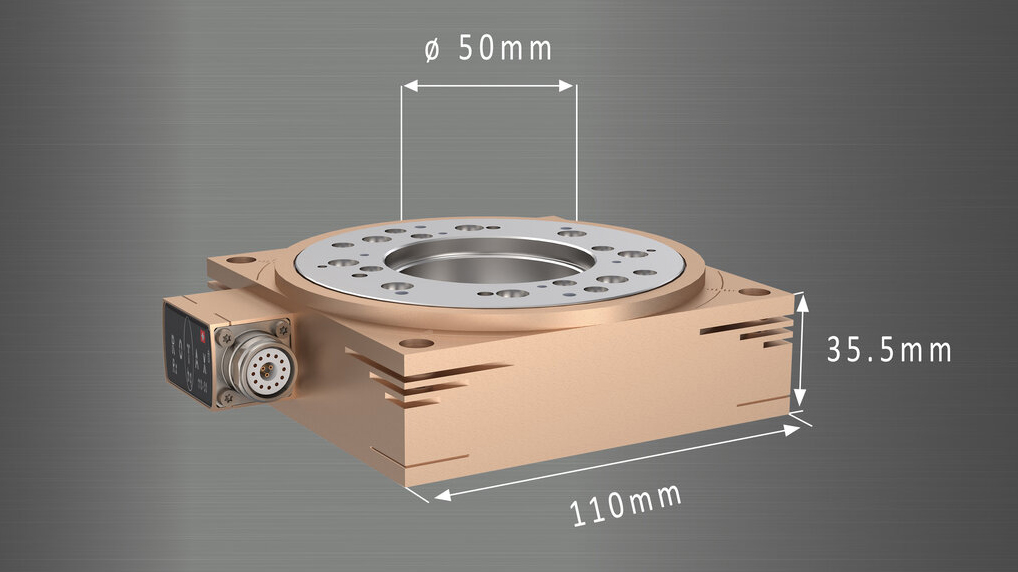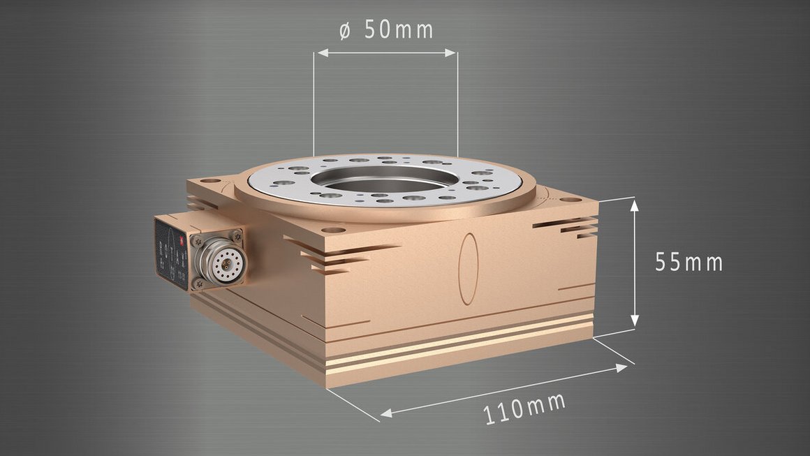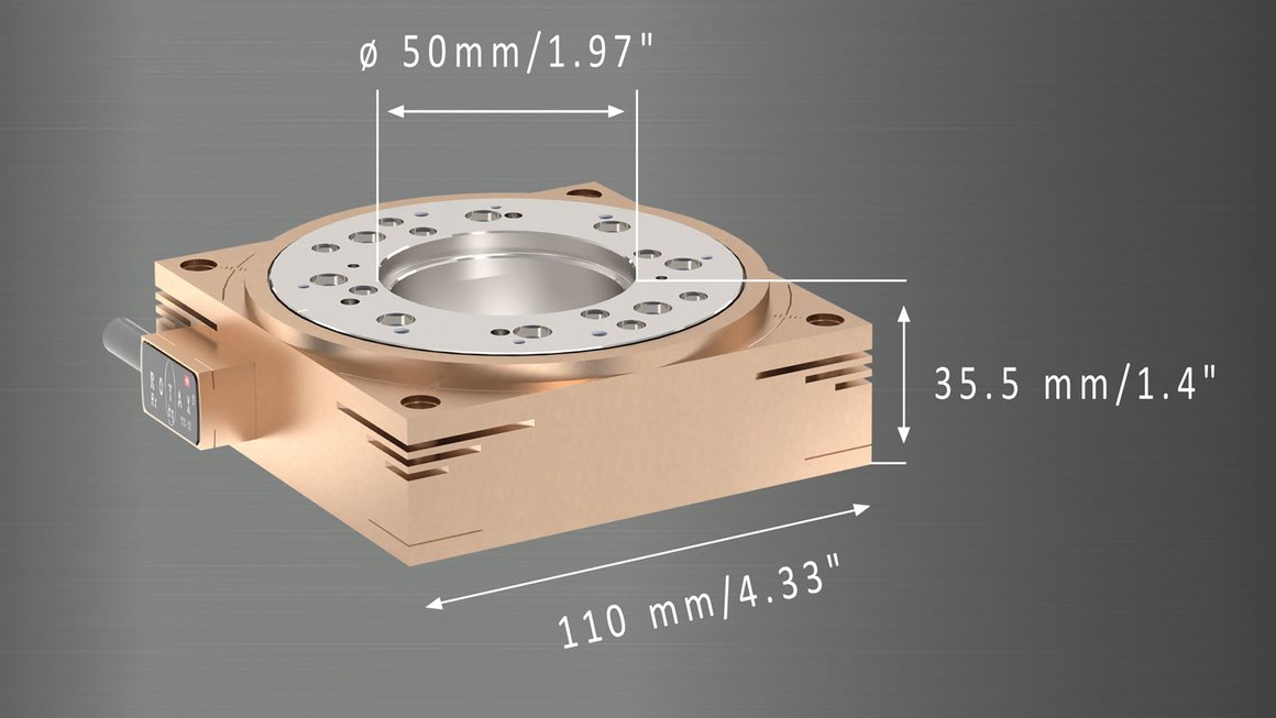 • Précis : Résolution jusqu'à 2'592'000 incréments par tour et double roulement précontraint pour garantir une grande rigidité et un moment axial élevé