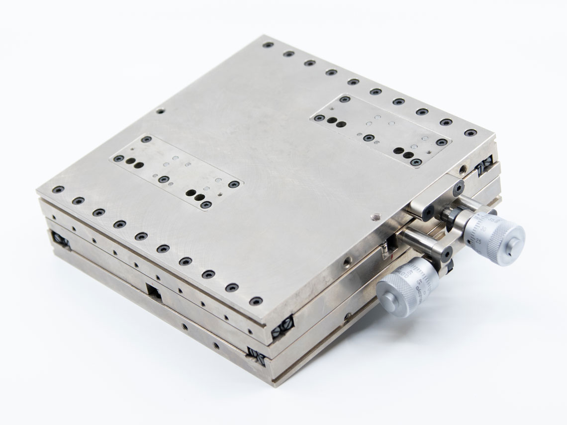 Nos coulisses de réglage manuel XY sont équipées de butées micrométriques et de guidages à rouleaux pour résister à de hautes charges. Vous pouvez effectuer des réglages fins en cours de production dans un encombrement réduit.