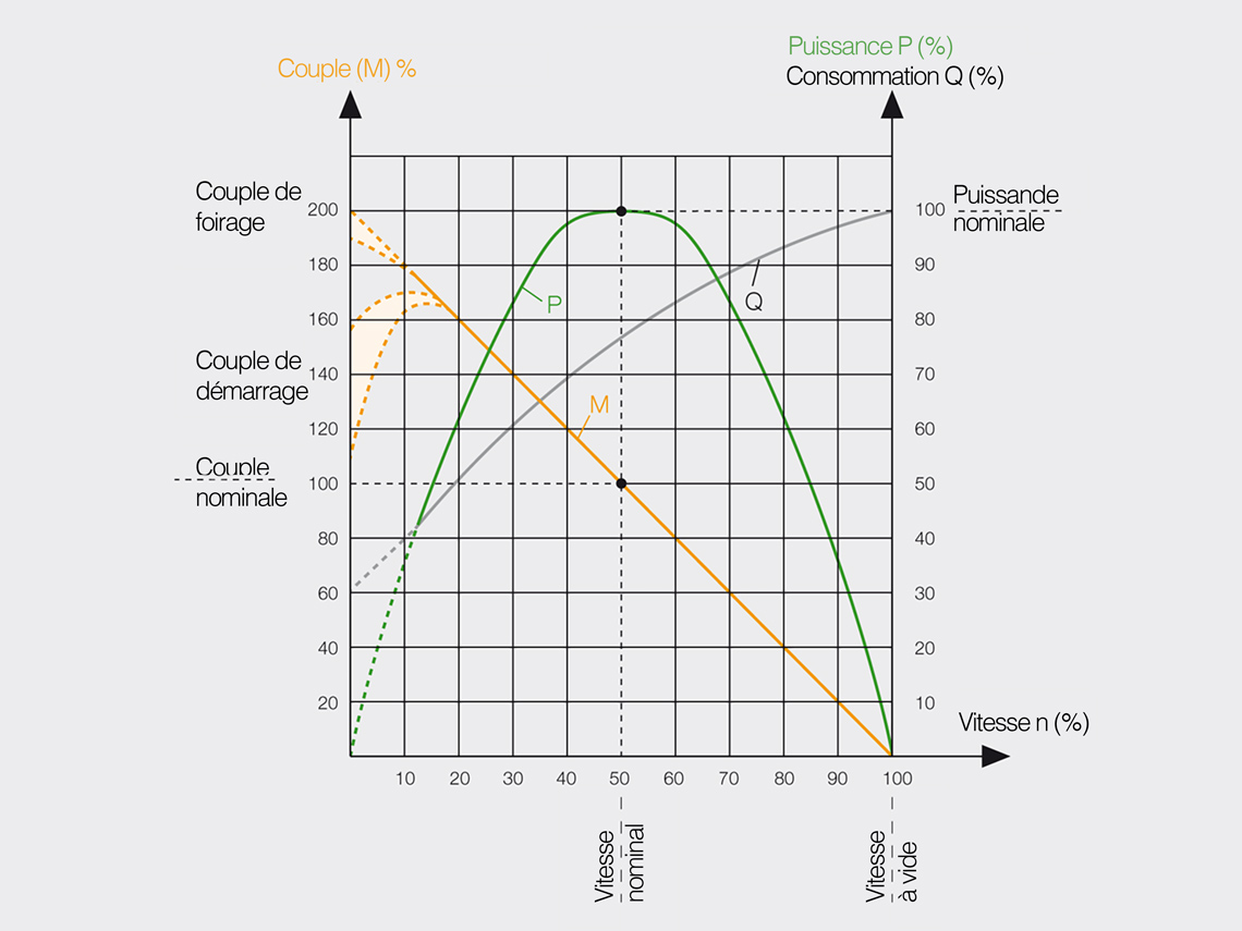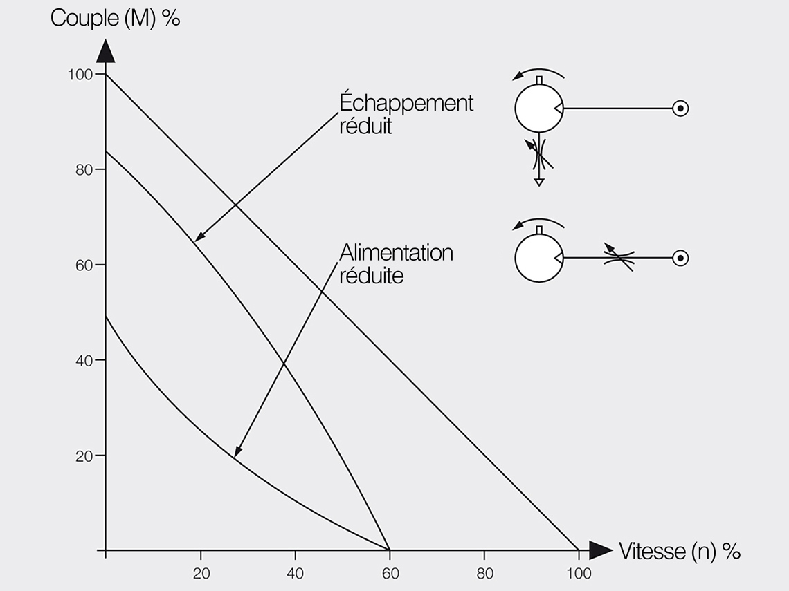 - Réduire le débit d'air évacué : la vitesse de rotation diminue, le couple reste inchangé