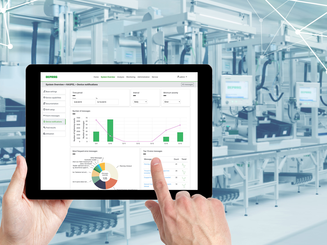 Avec DEPRAG Cockpit, l'utilisateur bénéficie d’une vue d'ensemble d'un nombre illimité de commandes de différents outils de vissage. Le logiciel aide les collaborateurs à surveiller des données de fabrication de différentes chaînes de montage. Les données de plusieurs usines de la société, ainsi que de leurs lignes de production et appareils connectés sont centralisées en un seul produit.
