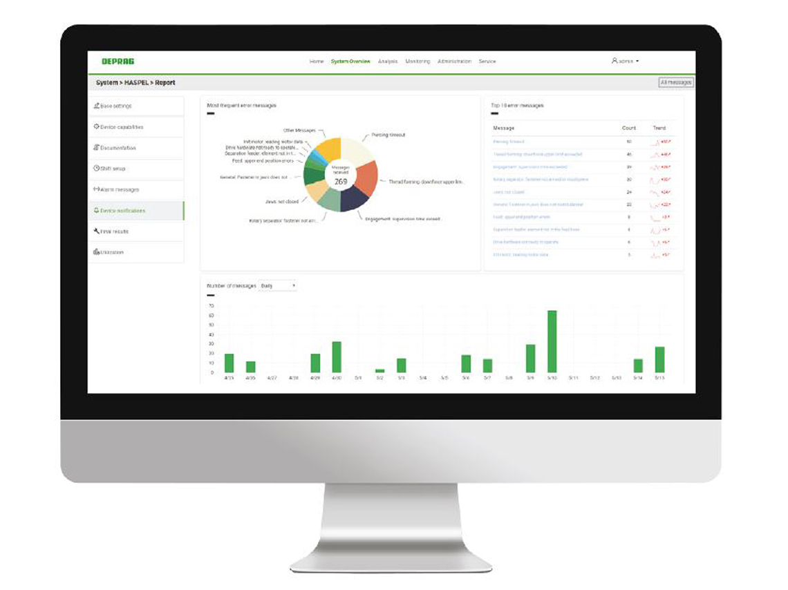Avec DEPRAG Cockpit, vous gardez une vue d'ensemble de vos systèmes de vissage. Le logiciel vous permet de surveiller et d'analyser les tâches de montage (Condition Monitoring) et vous fournit les outils d'analyse pour une optimisation constante des processus, l'identification des tendances et la maintenance prédictive (Predictive Maintenance). Bien entendu, le DEPRAG Cockpit permet également de surveiller et d'analyser les systèmes de vissage d'autres fabricants.